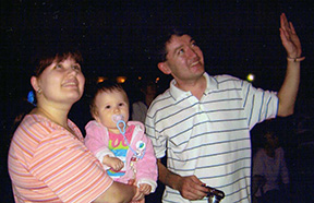 富士桜高原祭りで花火に見入るアジス一家 本稿冒頭で、昭和56年秋に2人のアラビアの若手エンジニアに山荘に寄ってもらったこと記しましたが、ささやかな山荘でしたが、それ以降も仕事の関係もあって何人かの外国人を招きました。以下に時期と名前ぐらいを列挙しておきましょう。昭和58年(1983年)9月に顧客であったサウジのPetrokemya社のマネージャーだったMajidさん、翌年10月には同じく土建担当だったKhanさんのご家族を招きました。富士の姿を楽しみにしていたようですが、2回ともあいにくの雨で周辺のドライブだけで終ってしまい残念そうでした。昭和61年6月の新緑がまばゆい中、インドネシアの化学会社Rekayasaのエンジニア2人が私の同僚に付き添われて来荘しました。そのごインドネシアで建設工事が始まりましたが、二人はそのときの感想をよく話していたそうです。昭和63年(1988年)7月、わたしがサウジに滞在していたときに親しくしていたペトロミンJORCのSaitさん一家5人を招きましたが、さいわい天気に恵まれ、自然を満喫して帰りました。一家はそれ以前にも横浜の拙宅に招いており、妻とも顔なじみでしたので奥さん共々、心おきなく滞在できたようでした。顧客ではありませんが、わたしの社で働いていた中国人の徐君一家を誘ったのは平成6年10月のこと、たぶん、日本人の中でひとり働く彼を励まそうという意図だったのでしょう。本栖湖からの富士の姿、帰途に立ち寄った白糸の滝に感銘していました。最後の外国人は平成19年(2007年)8月来荘のウズベキスタン人アジス一家です。同国にわたしが滞在中の通訳としてたいへんお世話になったDr.Mukhamedovの娘のグルルフさん、その子のムハッバトちゃん一家3人を3日間お世話いたしました。河口湖々上祭、富士桜高原祭の花火、風穴・氷穴見学、青木ヶ原内の散策などを楽しんでもらいました。今年の2月、ドクター・ムハメドフがJICA主催のセミナーに出席のため来日した際、日本企業に働くアジス一家も加わり、東京・幡ヶ谷で夕食を共にし、旧交をあたためることができました。びっくりしたのは、富士桜高原へ来たときにはまだストローラーに乗っていたムハッバトちゃんも11歳の少女に成長しており、一家には、当時ママのお腹にいた妹のディラちゃんも加わっていました。10年という歳月はやはり長かったこと、実感しました。