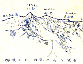 学生時代の旅に山行を挙げましたが、じつを言いますと、登った山の数はそう多くはありません。奥秩父、北、南、中央アルプスなどへ足を踏み入れてはいますが、体力にあまり自信のなかったわたしとしては、古都の巡礼と山行きのいずれを選ぶかと問われれば、やはり古都を選びました。社会人になってからはその傾向は一層顕著になり、一通りそろえた山の道具はお蔵入りさせたものでした。はじめての山行は高校1年のとき、親しくしていた友人と上州三名山のひとつ妙義山でした。高さは1100メートルていどの低い山ですが、峨々としたその特徴ある山容は、疎開していた安中での約1年半弱の間、天気が悪い日は別として毎日のように望んでいたので、その山を選んだのはごく自然の成り行きだったと思います。しかし、そのときは山登りの準備が不十分で、足元はズックの運動靴、たしか地図も持参していないというお粗末さで、結局登山道を失い、表妙義山塊の白雲山々頂を仰ぎながら、すごすごと下山するという苦い経験をしました。本格的な登山は大学へ進んでからで、アルバイトで稼いだなけなしの小遣いをはたいて安っぽい山の道具1式をそろえました。合成樹脂製のまがい物の登山靴、ウインドヤッケは秋葉原で購入した、朝鮮戦争で米軍が使い古したものでした。