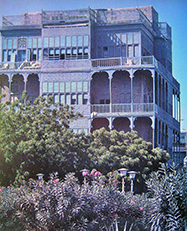 ジェッダ市内に遺るローシャン様式の建物 サウジアラビアでは建築家と称する人との直接の出会いはありませんでした。わたしが長期滞在したのは古来「紅海の宝石」と称せられていた同国第一の都市ジェッダで、同国の第二次五ヵ年計画に基づく発展途上の中にあって、それにまい進する熱い思いをひしひしと感じたものでした*1。とくにジェッダの市長・ファリシーさんはまだ若く、エジプト・アレキサンドリア大学で建築・都市計画を学んだ方なので、「ジェッダはここへ来るすべての人たちに、心からのおもてなしをしたい」という信念で市内の近代化をめざしていました。その端的な成果は、市内のクリーン・プロジェクトの推進で、とくにフランスのリヴィエラを意識した海浜公園の整備と、それとの対象とも言える、市内にのこるローシャンと称される華麗な木彫りのバルコニーを持つ古い建物群の保存を図ったことです。そのほかにも植物生態学をベースにした市内の植生化、それに伴う彫刻の設置、ソディウム灯の敷設などなど、目を見張る思いでした。すべてわたしが同国に滞在し、かつ出張で訪れていた数年間での見聞ですが、もう30数年も前の古い話になります。